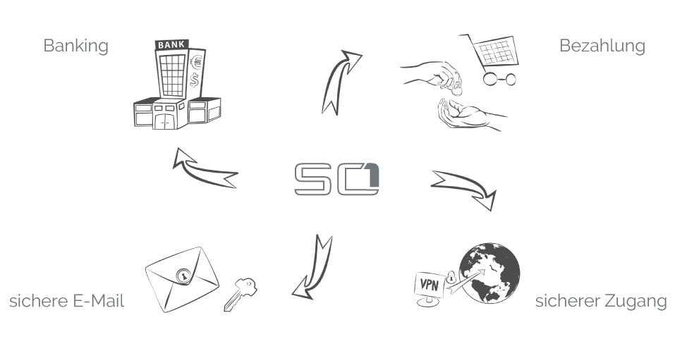 Das System wurde mit dem Ziel entwickelt, Kunden die Möglichkeit zu bieten, ein Seal One Gerät bei verschiedenen Akzeptanzpartnern zu nutzen. Kunden, die mehrere Konten bei einer oder mehreren Banken besitzen, benötigen ebenfalls nur ein einziges Gerät. |